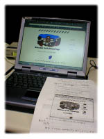 ●ブロードバンドインターネット研究 その5 NTTから電話!フレッツADSL開通は8.16から!フレッツADSLに申し込んで3日目の8.2に、さっそくNTTから電話があった。「8月16日(木)午前0時からADSLが使えるように、その前日の15日に局の配線工事をします。その前にADSLモデムとCD-ROMを送ります。」とのこと。ラッキー!申し込みから2週間ちょっとで開通の予定。いよいよ我が家も常時接続のブロードバンドでインターネットができるぞ!とはいえ、局からの距離が遠くなるほどスピードが落ちる。2.5km以内が基準とのこと。我が家までは約3kmでちょっと不安。5kmまではいけるとのことだが。きっちり「下り1.5Mbps、上がり512kbpsはでない可能性がありますがいいですか」と了解をとられた。まあ、ISDNよりは速いだろうし、常時接続になるからいいとしょう!初期費用が3600円(契約金800円、工事費2800円)、毎月モデムのレンタル料を含めて4290円。 ●奈良市教育情報通信ネットワーク研修講座18 インターネットで情報発信に参加 春日中学校のパソコン教室で約30名参加。作ったホームページをサーバーにアップしてインターネットで公開するやり方を研修。奈良市教育委員会のまなび・かがやきネットのサーバーには内部サーバーと外部サーバーの2つがあって、今回はいきなりインターネットに公開せず、内部サーバーにパソコンのファイルをコピーしてイントラネットでホームページを表示させた。特別なソフトを使わずにインターネットエクスプローラ5.0以上のftp転送機能を使ってする方法で実施。ftp://ユーザー名:パスワード@000.000.0.0/とアドレスを打って市の内部サーバーにログイン。(000.000.0.0には市の教育委員会のサーバーのドメインの数字または、インターネットの場合はwww.の後にアルファベットが入る。)そこにマイドキュメントにあるホームページのファイルをコピーしてペーストするだけ。すごく簡単。見るときはアドレスにhttp://000.000.0.0/ユーザー名/を入力するとOK。ユーザー名とパスワードは市教委に申請してもらう。これで、学校のホームページを公開する方法がわかった。2学期には、公開できそうです。画像はNECのノートパソコンで当日のレジメを参考にホームページをアップして表示しているところ。一度に30台のパソコンからサーバーにアクセスしたので、負荷がかかりファイル転送にかなり時間がかっかた。 |