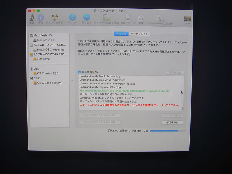●新iMac研究 91 外付けハードディスクから起動して修復